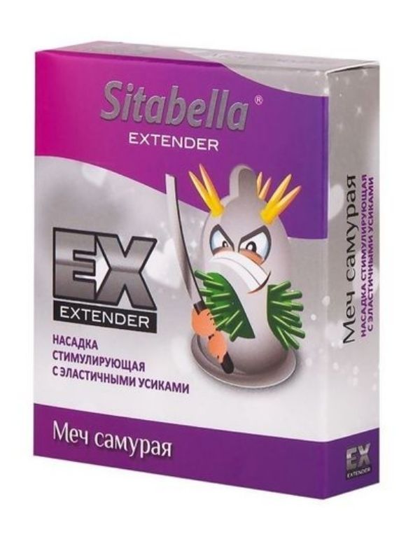 Extender Samurai Sword, çok sayıda erojen bölgeyi etkilemenize izin veren, çeşitli konfigürasyonlarda oldukça büyük bir elastik anten setine sahip bir prezervatifdir. Uyarıcı başlık doğal lateksten yapılmıştır.