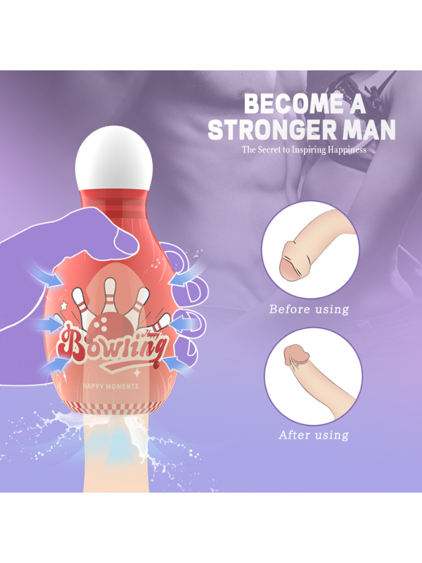 Keyifli Bowlingler, eğlenceli ve sıradışı tasarımıyla klasik erkek mastürbatörlerine yenilik katıyor. Bowling topunu andıran özel formu sayesinde elde rahatça tutulur ve kullanımı kolaydır. İç yapısı, erkeklere özel masaj ve uyarım sunarak yoğun bir zevk deneyimi sağlar. Kompakt boyutu sayesinde taşıması kolaydır; evde veya seyahatte rahatlıkla kullanılabilir.