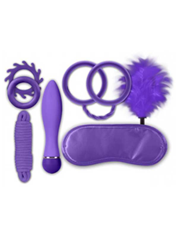 Çiftler İçin Vibratör ve Mor BDSM Seti özel anları daha eğlenceli hale getirmek için çiftlere özel birbirinden kaliteli, hepsi birbirine uyumlu tek renk konsepti ile üretilmiş, romantik fantezi setidir. İçinde vibratör, göz maskesi, kelepçe, ip ve penis halkası vardır. Mor renklidir.